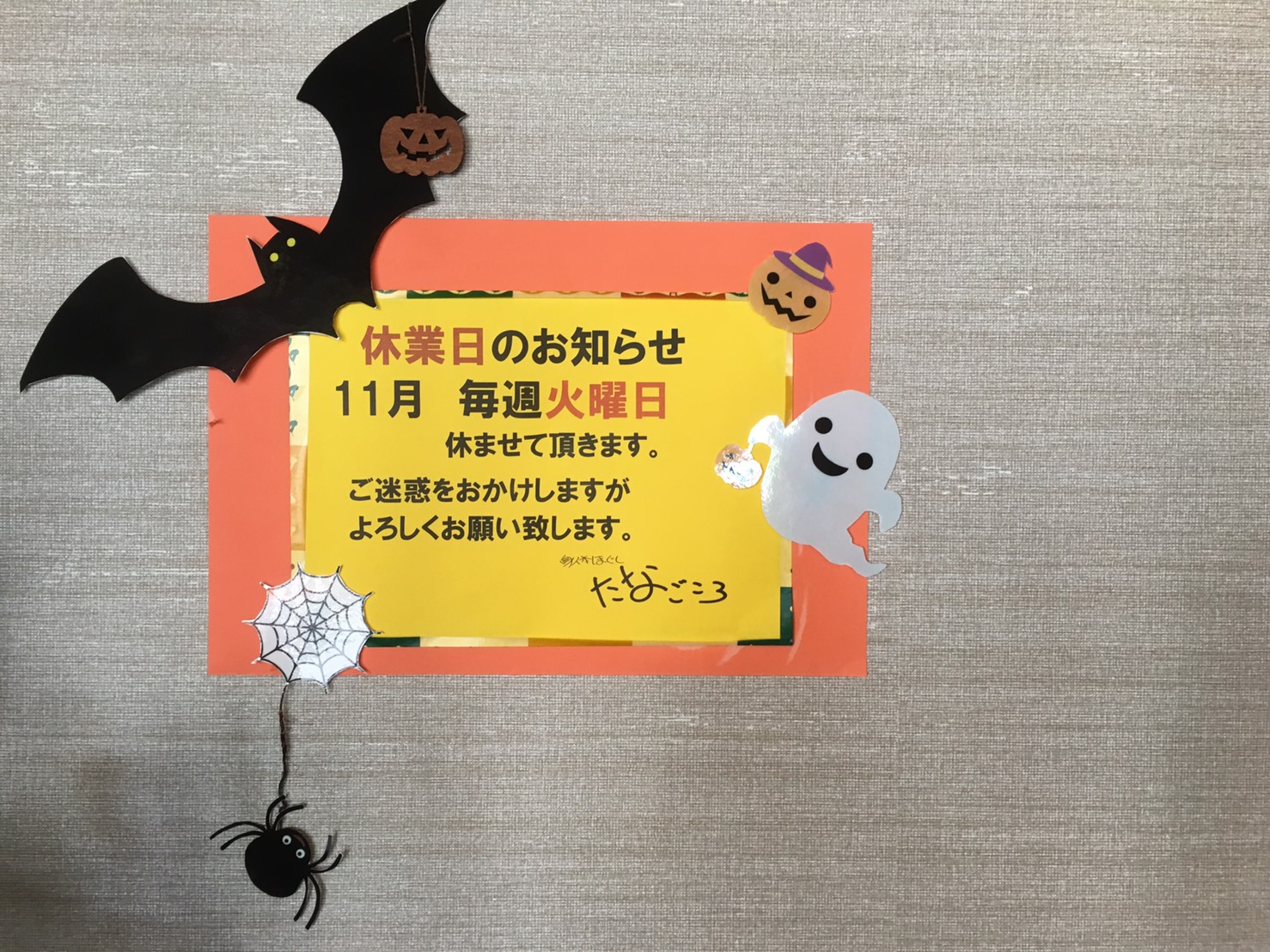 いつも当店をご贔屓賜りまして誠にありがとうございます。当店は 11月10日(火) 11月24日(火) の営業を休ませていただきます。 ご理解のほど、よろしくお願い申し上げます。