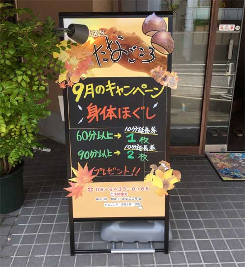 まだまだ日中の暑さは続きますが、朝晩は肌寒いこともしばしば・・・、もうすぐ秋ですね。 今の時期は急激な温度の変化で体調も崩しやすいので、改めて注意が必要ですね。 さて、当店は今月も毎週火曜日のみお休みを頂戴します。 冷え込む時期の前に身体をしっかりほぐしてリフレッシュしに来てくださ~い。
