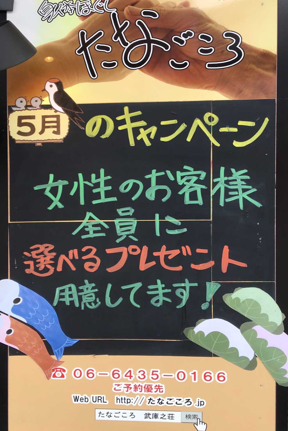 2015年4月4日(土)に当店“身体ほぐし たなごころ”が武庫之荘にオープンいたしました。 今後、地域の皆様並びにお客様に愛されるお店を目指して頑張って参ります。 お近くにお越しの際は是非お立ち寄り下さい。
