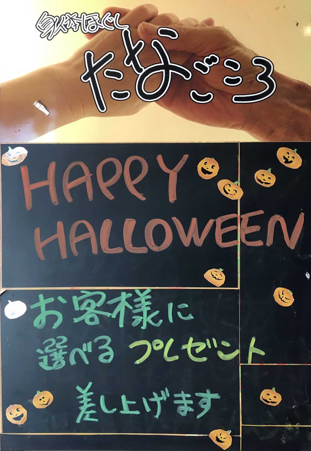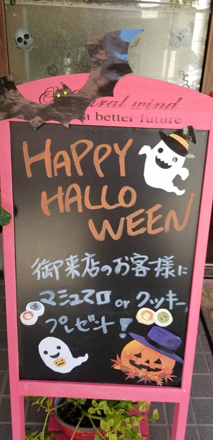 今月はHappy Halloweenキャンペーンと題し、お客様に写真のような選べるプレゼントをご用意してお待ちしております。