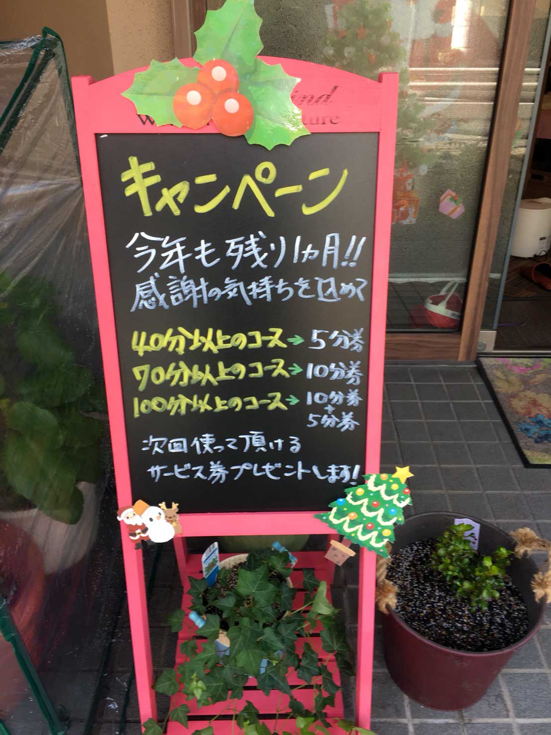 「Merry Christmas」キャンペーンとしてお客様全員に5分延長券をプレゼントいたします。
