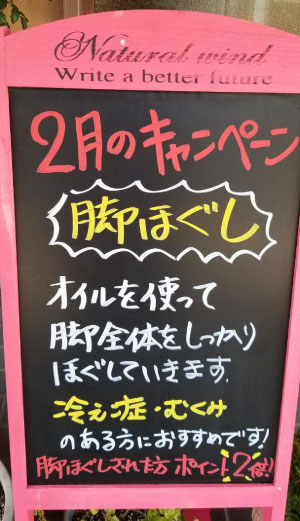 さて、今月は脚ほぐしのキャンペーンを実施します。