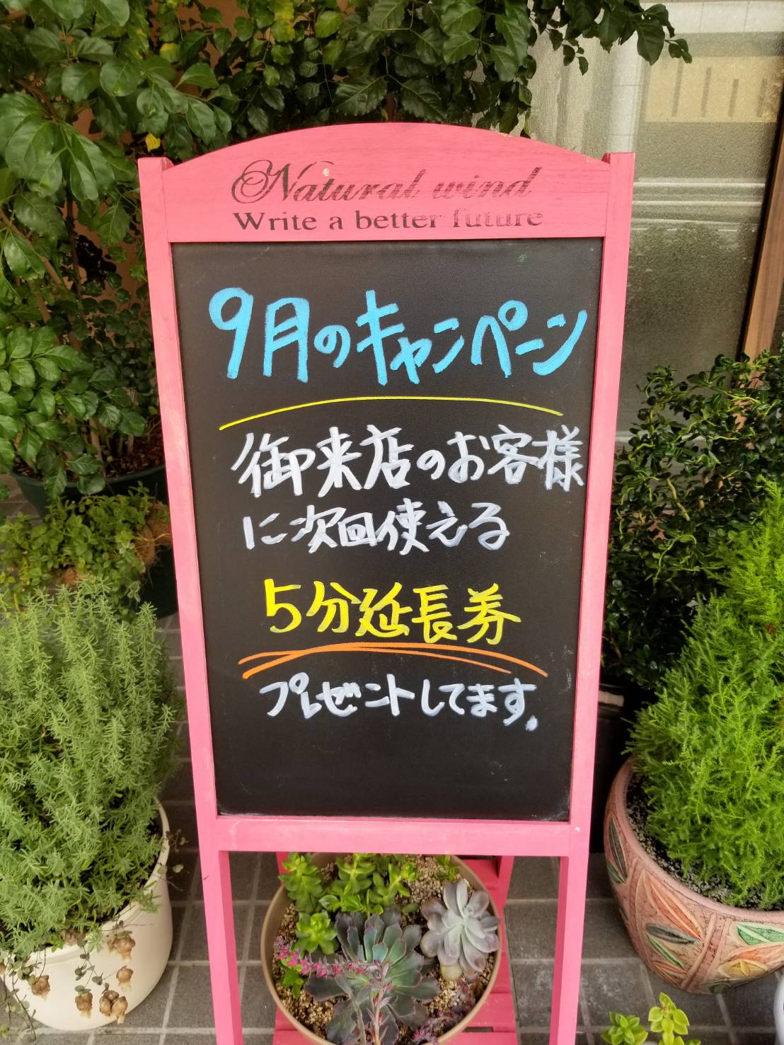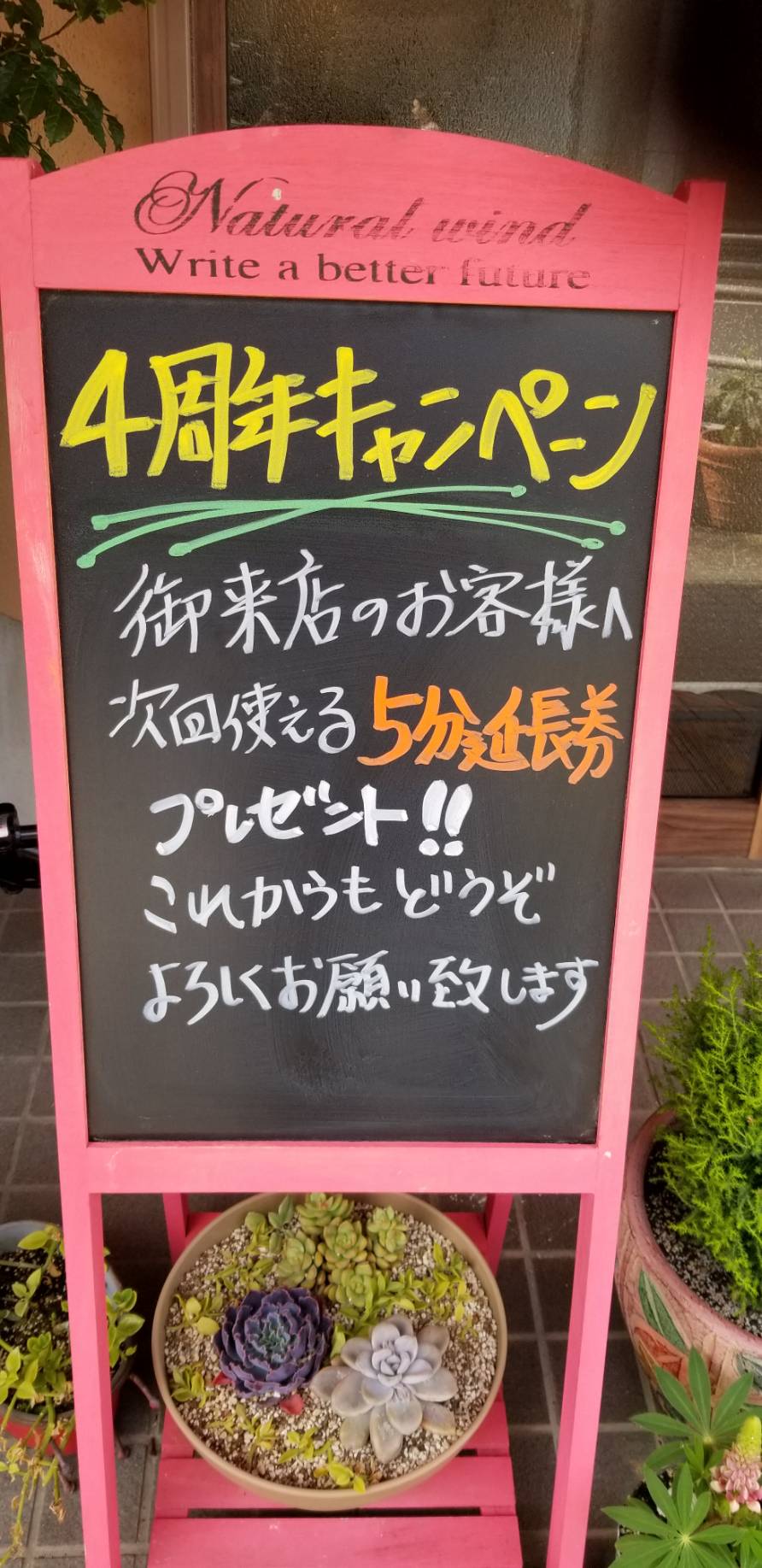 さて、今月はご来店のお客様に次回ご来店時にお使いいただける5分延長券をプレゼントいたします。