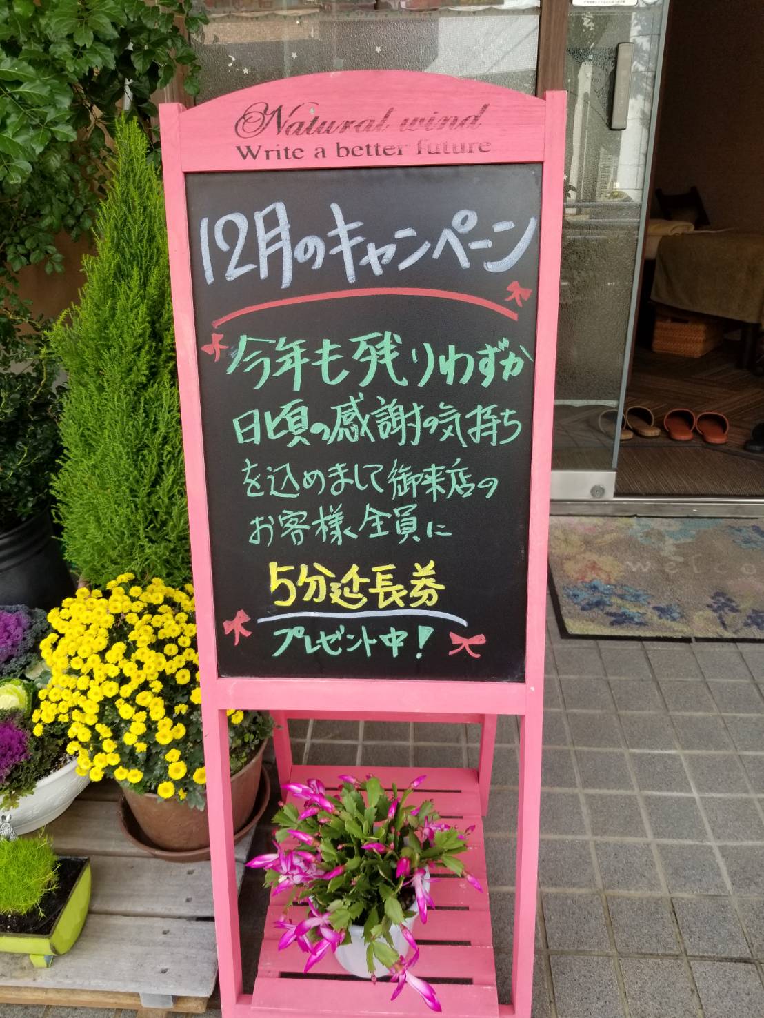 12月はキャンペーンとしてお客様全員に5分延長券をプレゼントいたします。