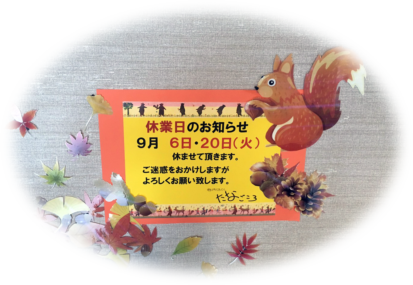いつも当店をご贔屓賜りまして誠にありがとうございます。当店は 10月6日(火) 10月20日(火) の営業を休ませていただきます。 ご理解のほど、よろしくお願い申し上げます。